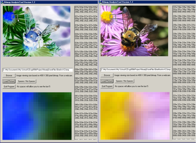 Here you can see what some of the values are when comparing the bee as it originally was compared to the inverted image. Click on the image below to enlarge.
