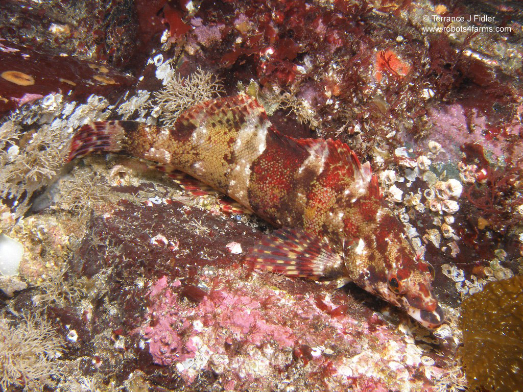[30 cm] long. This is a larger specimen of this fish than what I normally spot. [Oxylebius pictus] (December 23, 2006) |